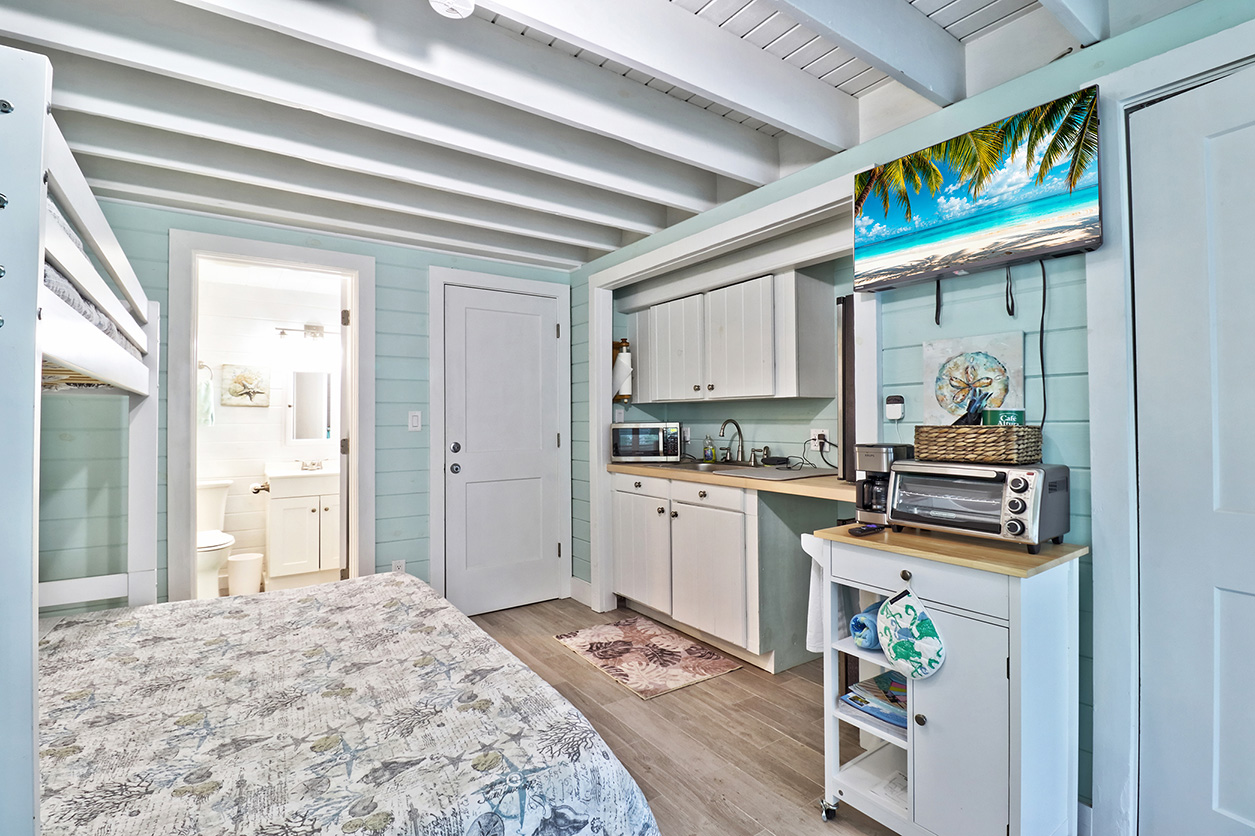 Centrally located within walking distance of major Guana Cay attractions such as Nippers, Grabbers, Rum Shot is a cozy apartment perfect for an individual or couple looking to stay on Guana Cay at an affordable rate while being in close proximity to major attractions. Amenities such as the liquor store, Fig Tree food store, and more are also within walking distance, in addition to the powder white sands of the beach.