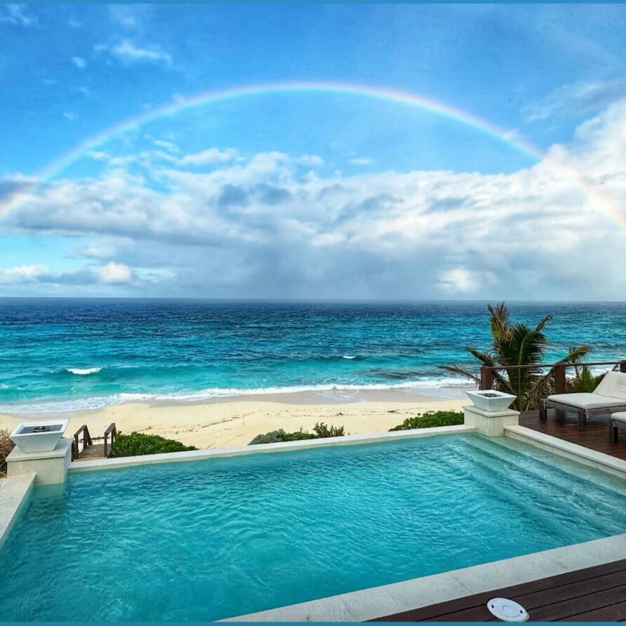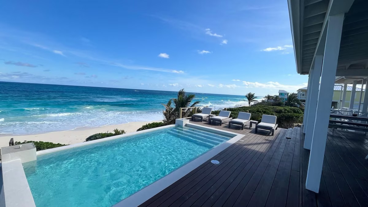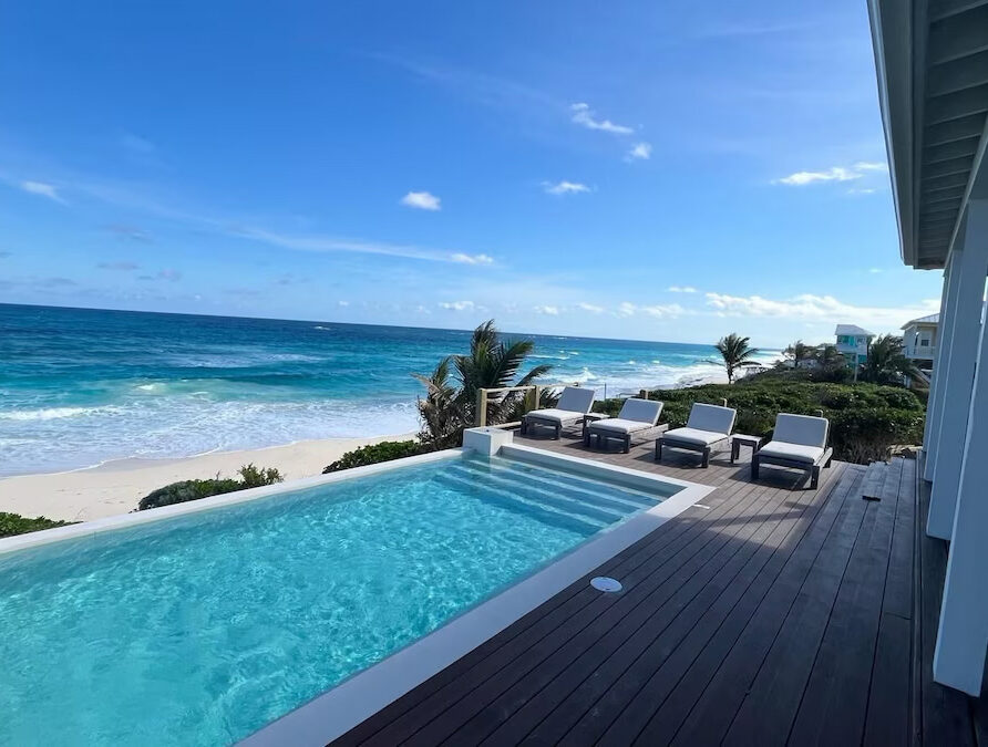 “Love Beach” is a 5 bedroom 5.5 bathroom luxury pool home with a full gourmet kitchen, furnishings imported from Bali, and large decks overlooking the Atlantic Ocean with infinity edge pool extending off the rear sun deck. Private beach stairs takes you down to the beach, where you can lounge in the breeze, sun tan, swim, snorkel, stroll or just relax on the beach with chairs and umbrellas provided.