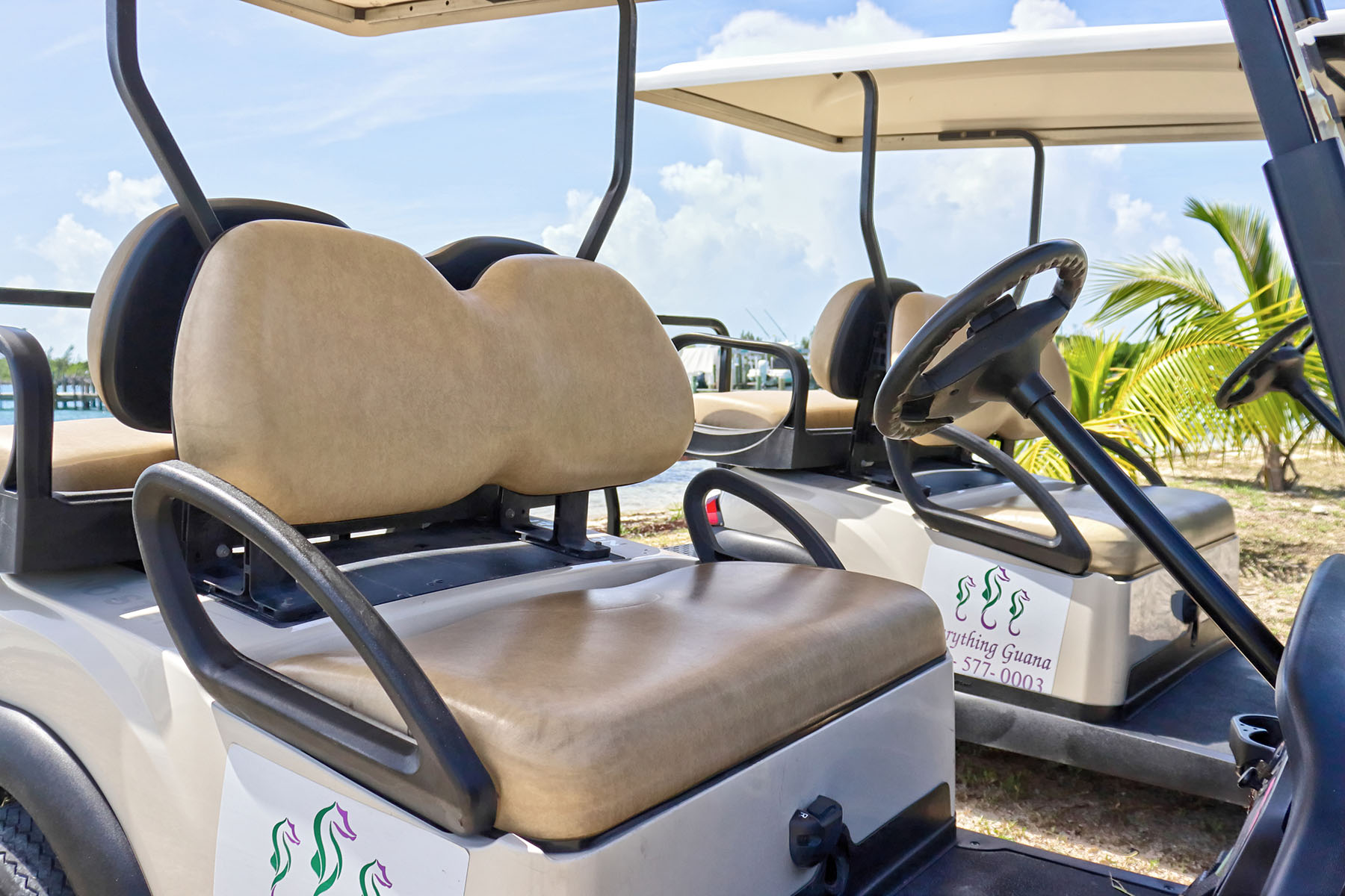 Everything Guana has a premier line of four (4) seater Club Cars available to fulfull all of your Guana Cay Abaco Bahamas transportation needs. Our top of the line carts can take you wherever you need to go on the cay in style and comfort.
